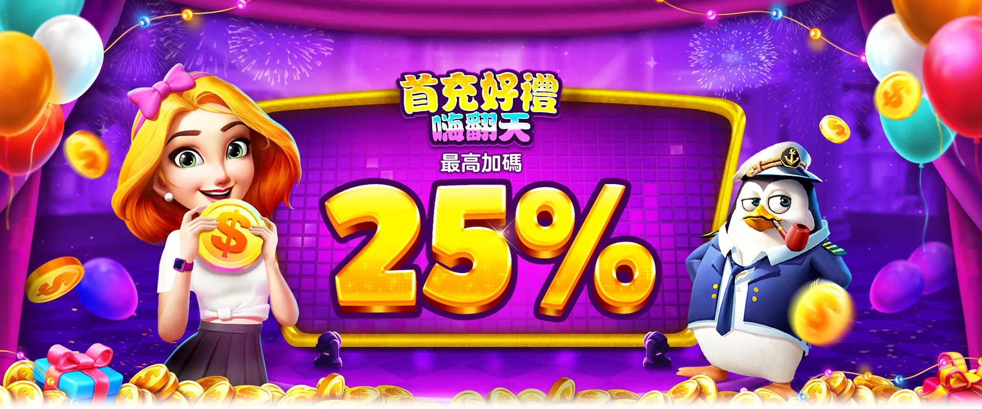 首次儲值最高送25%加碼