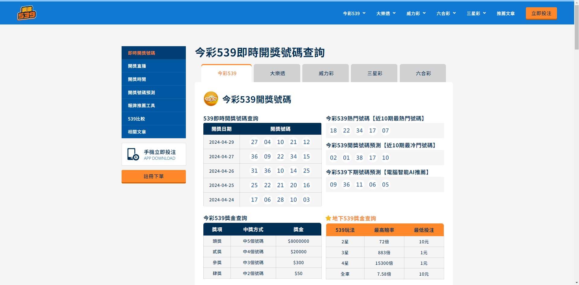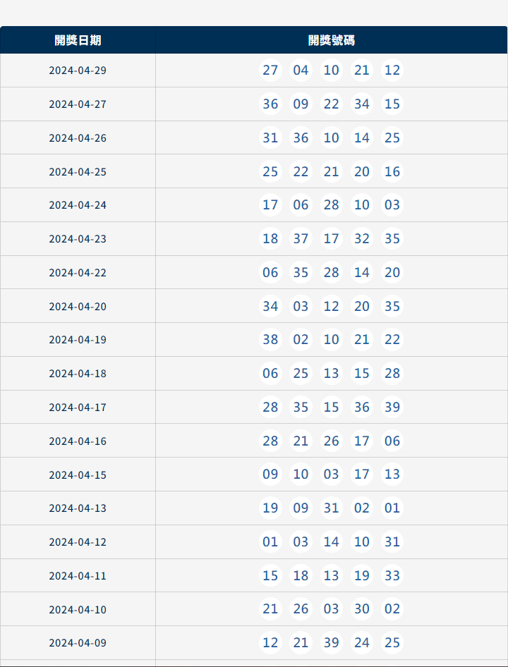 以下為最新即時的今彩539開獎號碼: