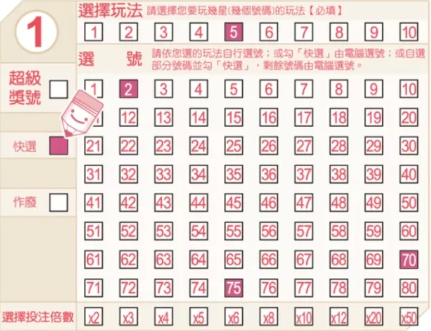1. 使用號碼選擇表進行投注。