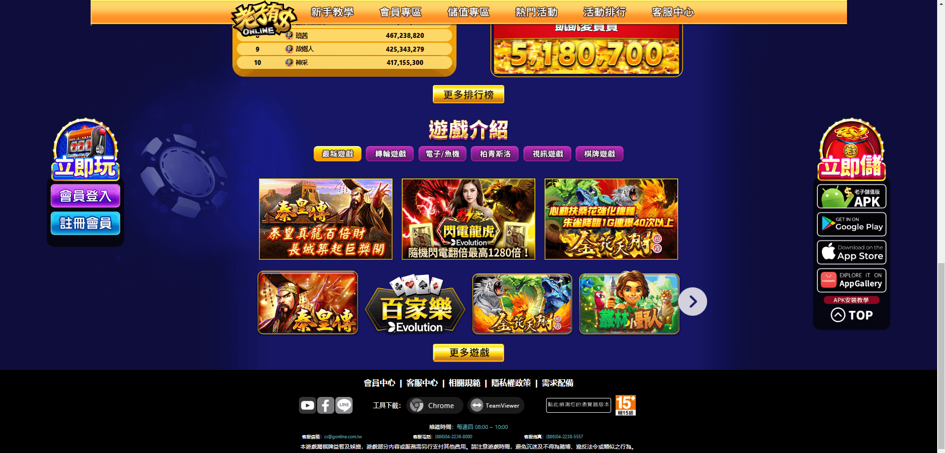 活動期間內,玩家於『Evolution全視訊遊戲』:含百家樂、21點(金卡以上)、龍虎、輪盤、骰寶、番攤、百家寶、撲克全遊戲進行押注,依活動【總贏分】排序獲得獎勵。