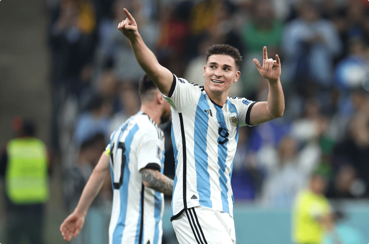 朱利安·阿爾瓦雷斯(Julian Alvarez)在半場結束時兩邊都取得了全面勝利
